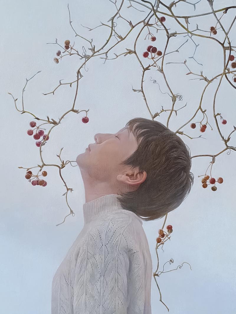 五嶋千絵 私は広島県庄原市の山奥に住んでいるが、最近では自分の今ある暮らしそのものが作品であると感じるようになった。作品を体感してもらうには現地に赴いてもらいその一瞬一瞬を体験することが一番だが、常に変化し続けて止まることがない。なので、私が人生で一番長く続けている「絵を描く」ことで一つの解釈を通した表現としてその時の姿を残していこうと思う。