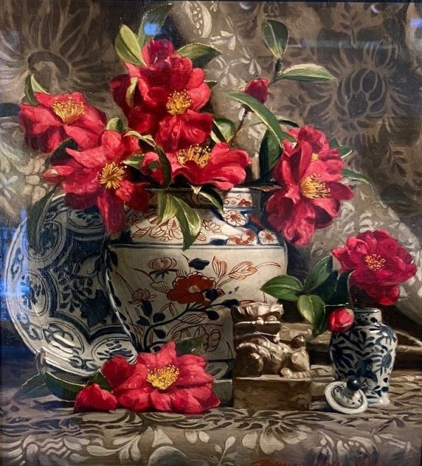 青木敏郎「寒椿と焼物」5号変